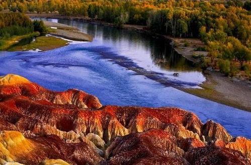 新疆五彩滩,位于新疆布尔津县境内,与哈萨克斯坦隔河相望。这里的地貌奇特,色彩斑斓,被誉为“地球上的调色板”。五彩滩的奇特之处在于,它的岩石在阳光的照射下,会呈现出红、黄、绿、蓝、紫等多种颜色,美得让人惊叹。